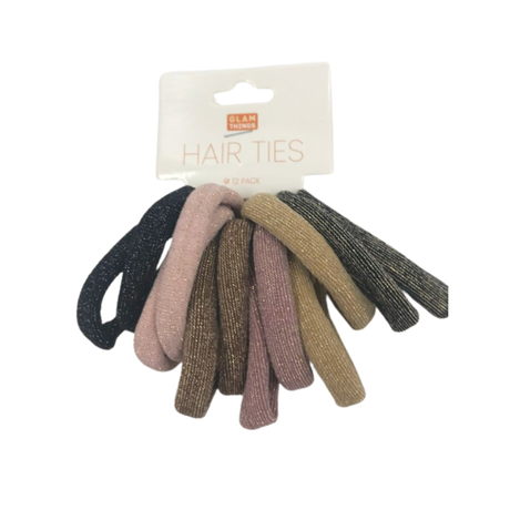 Hair Ties 6.5cm 12pc - Glitter Brown Mix