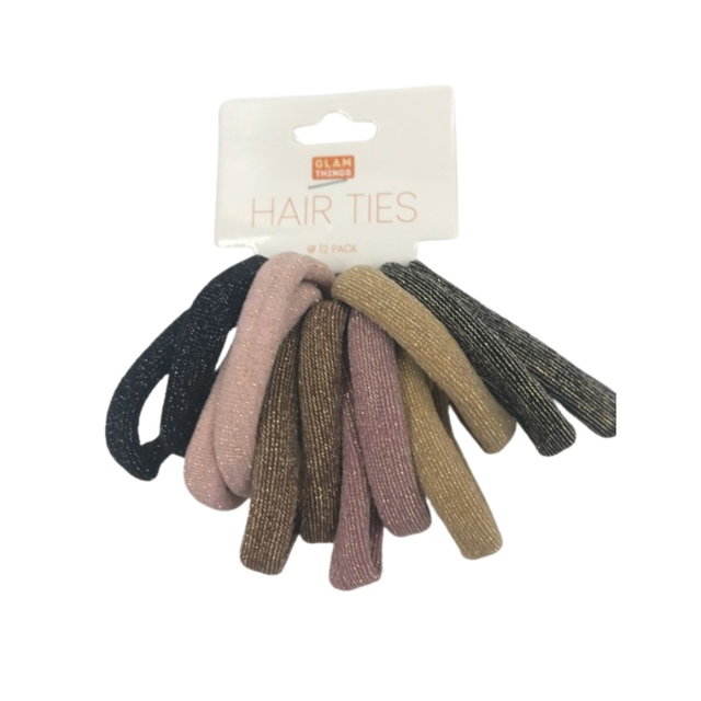 Hair Ties 6.5cm – 12 Pack Glitter Brown Mix