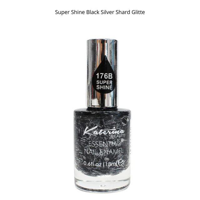 💅 Katerina Nail Polish – Super Shine Black Silver Shard Glitter (18ml)
