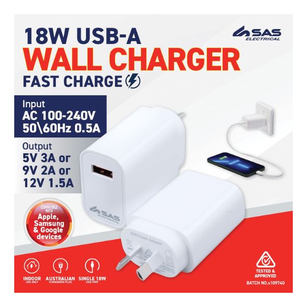 Charger 1-Port USB-A 18W White (Compatible with iP & Android)