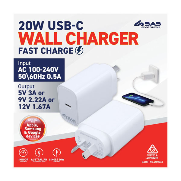 Charger 1-Port USB-C 20W White (Compatible with iP & Android)