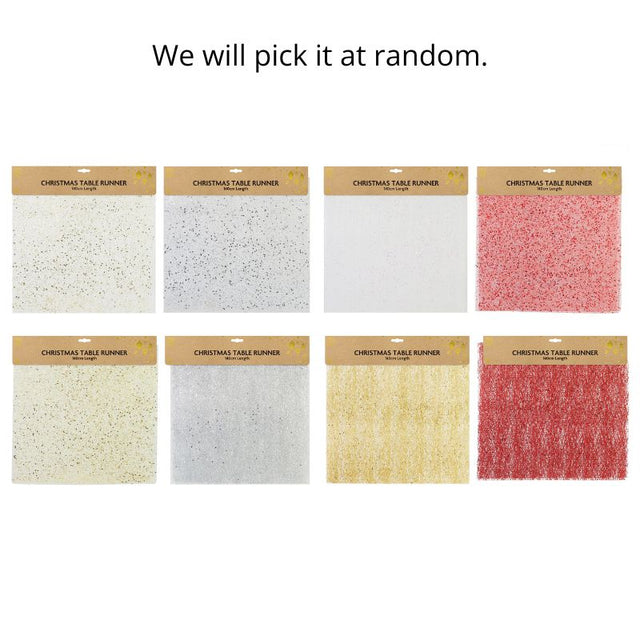 RUNNER GLIT ORGANZA 140cm Asst is backordered and will ship as soon as it is back in stock.