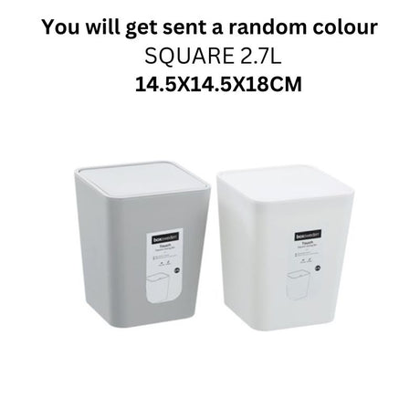 Regular price $2.50Unit price /UnavailableLow stock (16 units)TOUCH SWING BIN SQUARE 2.7L2 ASSTD 14.5X14.5X18CM