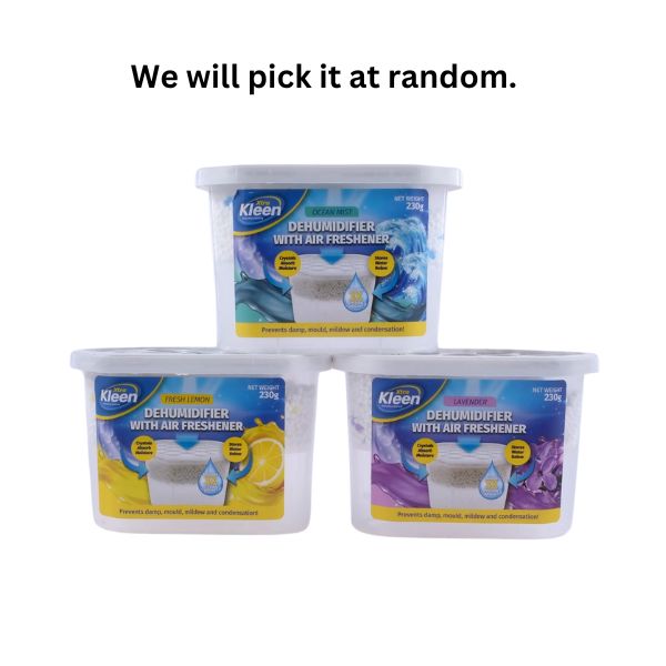 Keep your interiors fresh, dry and inviting with our 230 g Dehumidifier + Air Freshener duo. This versatile moisture absorber not only fights damp and mould but also infuses your space with a gentle, long-lasting scent—choose from Ocean, Lavender or Lemon to suit your mood. Perfect for closets, bathrooms, cars, caravans, kitchens and more, it’s the all-in-one dehumidifier solution your home needs.
