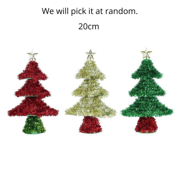 TINSEL TIERED TABLE TREE 20cm Asst