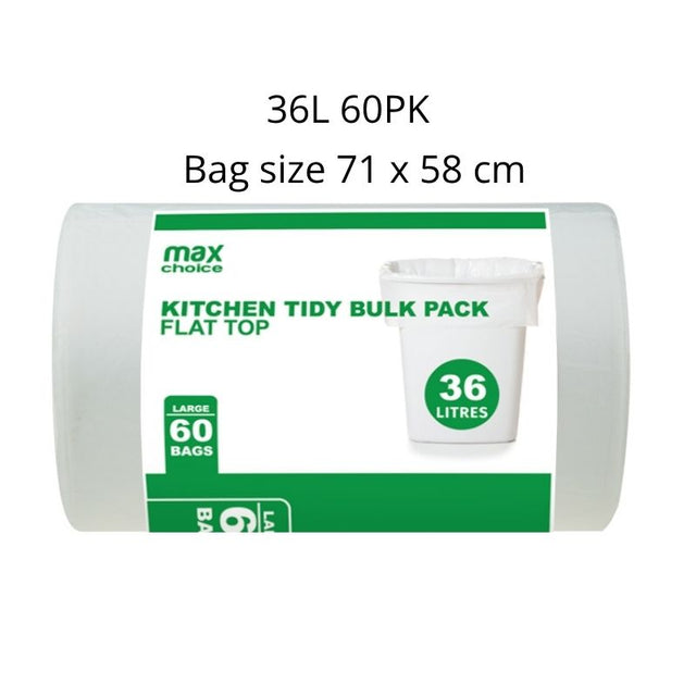 Max Choice Kitchen Tidy Bag Flat Top 36L 60PK