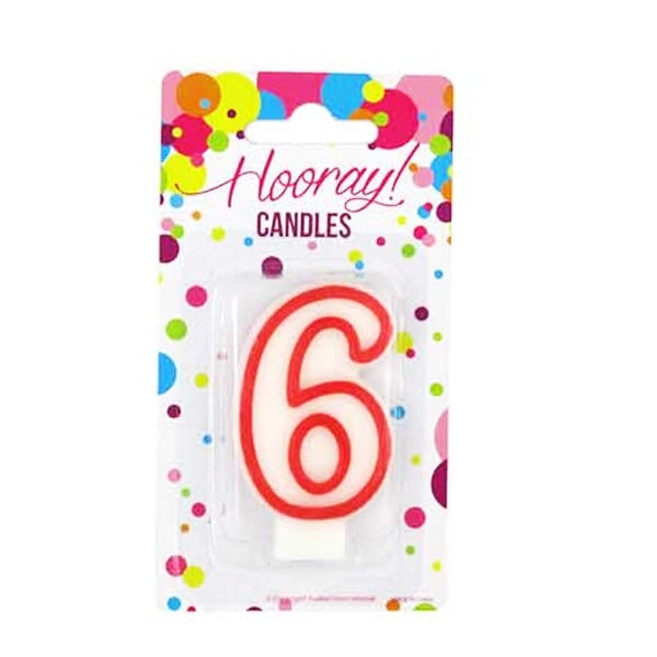 Candle Number 6 Red/White 7.5cm BC