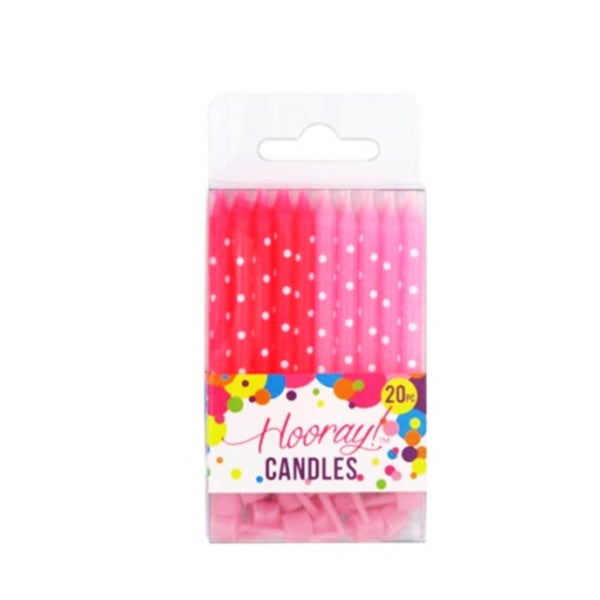 Candles w/holders 20pc Pink w/spot