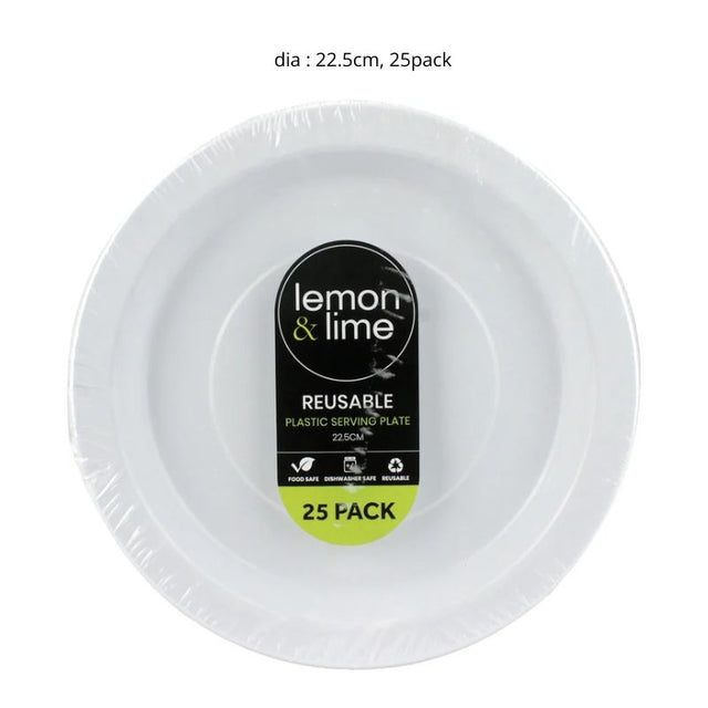 REUSABLE PLASTIC SERVING PLATE22.5CM 25PK
