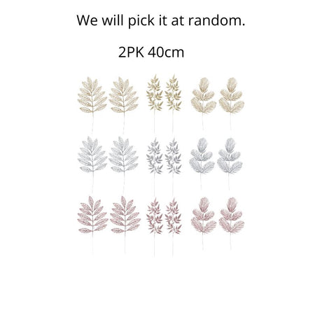 Glitter Leaf Pearl Pick 2pk 40cm Asst